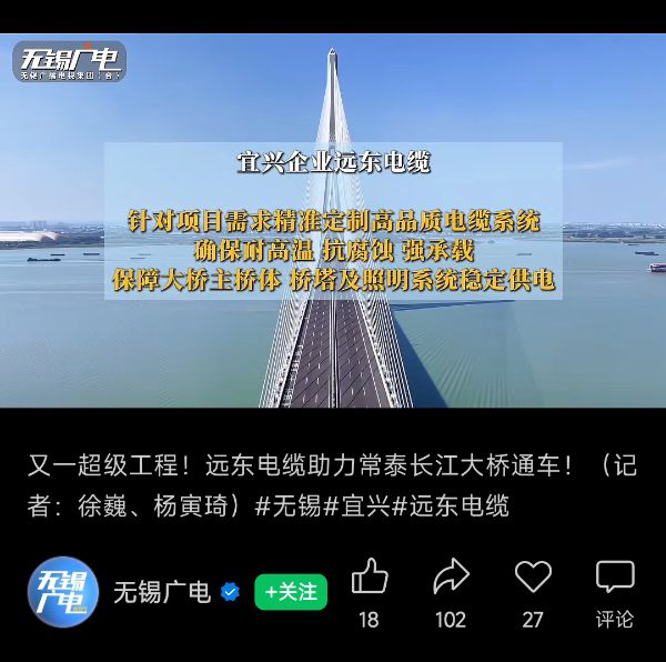 官媒點(diǎn)贊!遠(yuǎn)東助力世界最大跨度斜拉橋——常泰長江大橋通車!