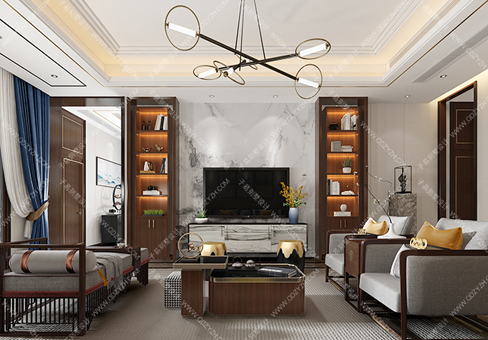 青島新中式裝修效果圖_上流樣板間裝修效果圖/報價
